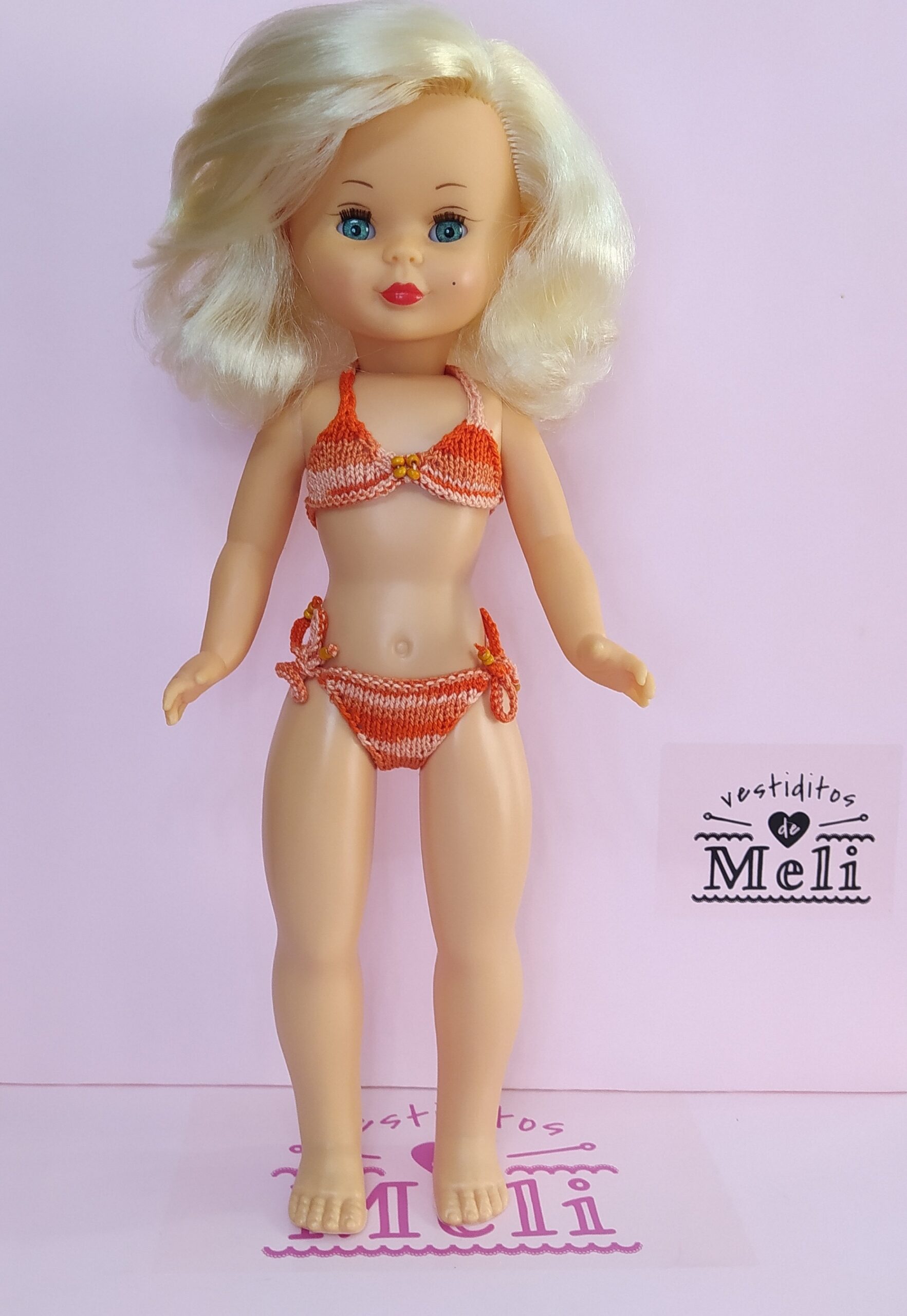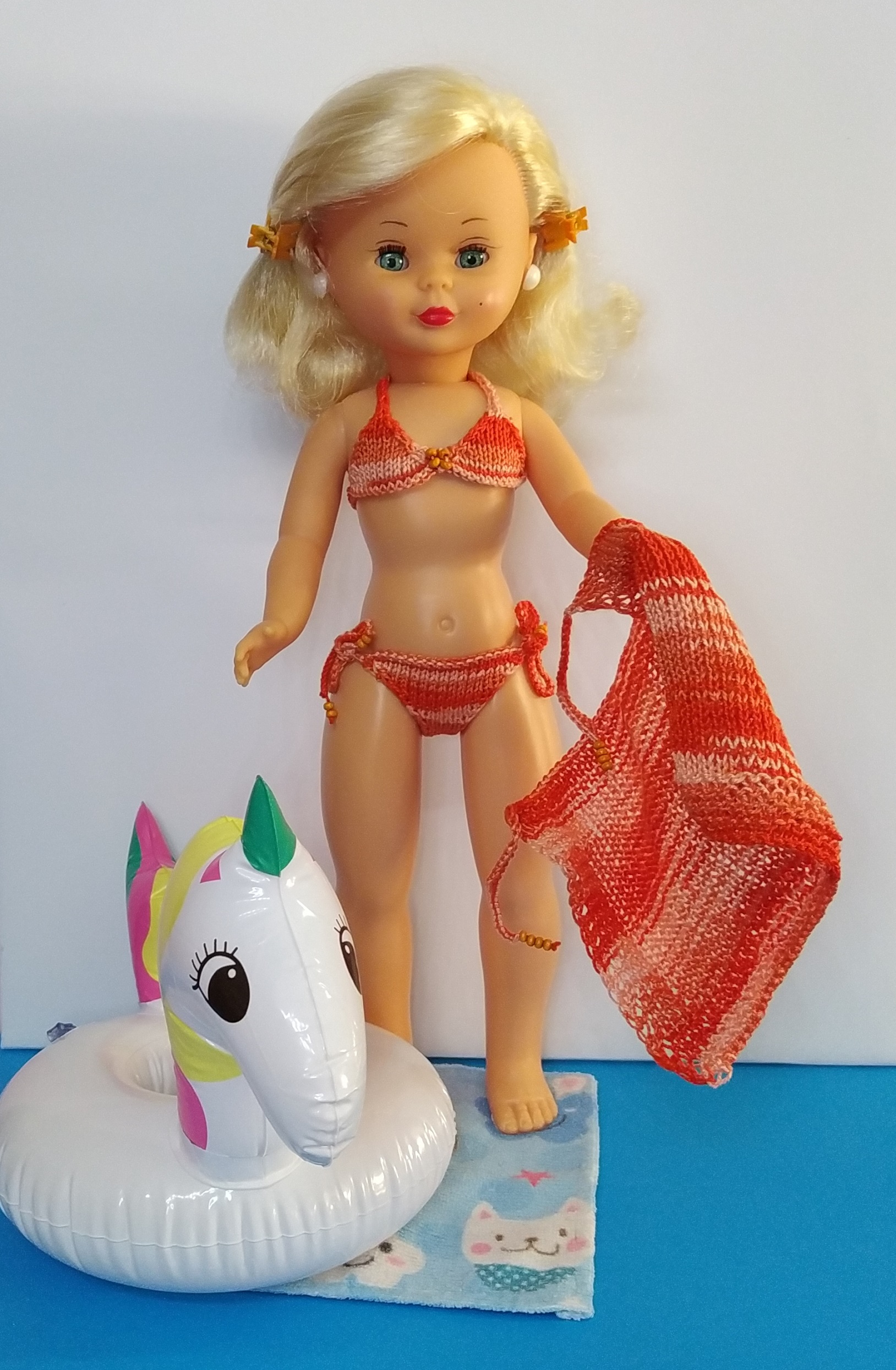 Nancy Diva con bikini de hilo perlé multicolor y adornos.